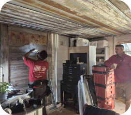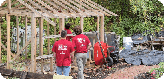 It was a gorgeous, sunny fall day when our team arrived, dressed in red to honor the Feel the Love program. Zak added a pop of pink in support of our Men Wear Pink campaign for breast cancer awareness. We started the morning with breakfast catered by “You’ll Eat It and Like It,” courtesy of our recipient, who went above and beyond to make our crew feel appreciated. She even treated everyone to lunch later in the day, saying, “I had to be sure they were taken care of—it’s the least I could do!”