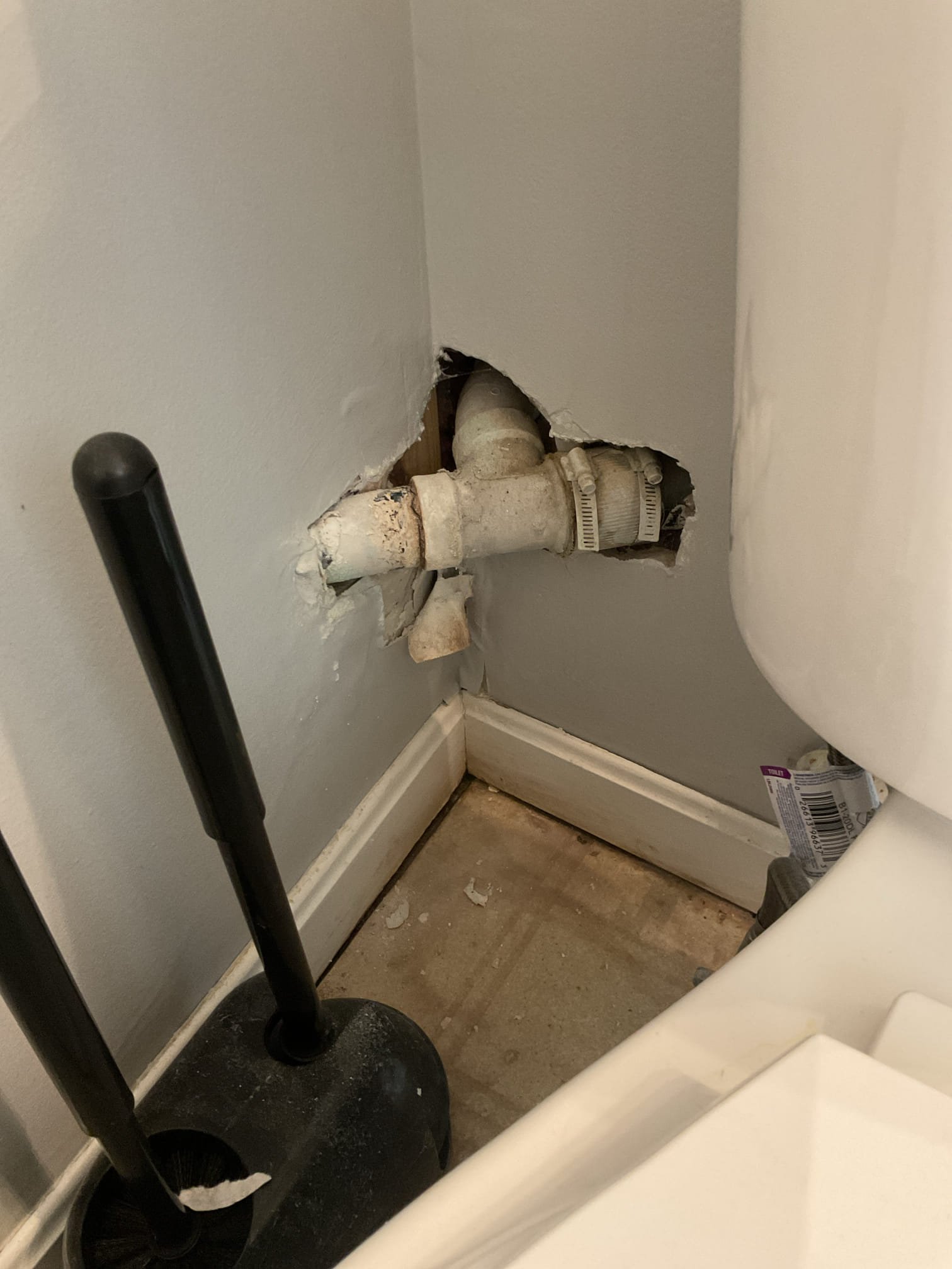 Looked at first floor toilet. Leak appears to be from water softener drain line from outside. Upstairs toilet and supply valve needs to be replaced.